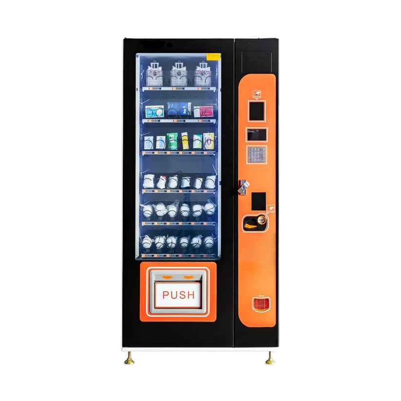 This vending machine can be set up to hold drinks, snacks, or a variety of products.